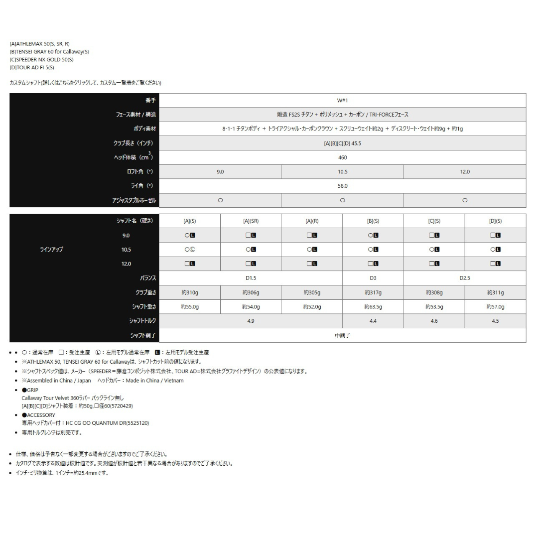 【お取寄せ】最新2026 キャロウェイ QUANTUM MAX ドライバー 各種純正シャフト 日本正規品