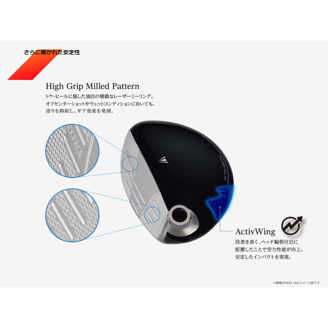 ※「ハイブリッドはロフトがある程度付いているので、構えやすさとスピン量のバランスも考えながらスコアラインの設計をしています。特に『14+』の場合、ダークフェースにしているので、スコアラインが見えないと難しそうに見える一方で、ハッキリしすぎても逆に構えにくいという意見が出たため、グレーに仕上げてバランスを取っています」(公式ホームページより)