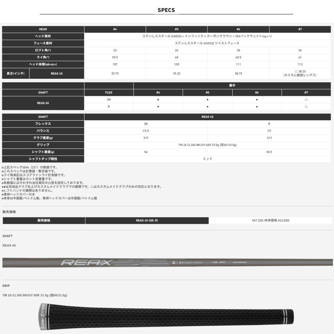 ※シャフト:REAX 45 純正カーボンシャフト